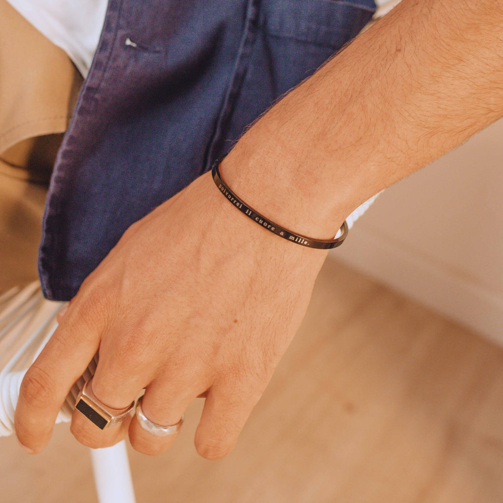 Ottimo bracciale, con incisioni personali, comodo perché si può stringere e allargare in quanto è leggermente flessibile. Adatto per regali di coppia. Spedizione puntuale