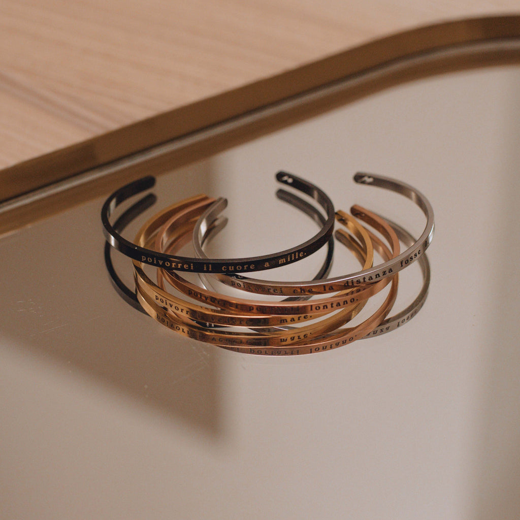 Completamente regolabili - ultra-leggeri, resistenti e facilissimi da piegare con il minimo della forza per adattarli perfettamente al tuo polso. I bracciali Flashback Milano sono progettati per essere eleganti e comodi allo stesso tempo, così da poterli portate con te ovunque tu vada.